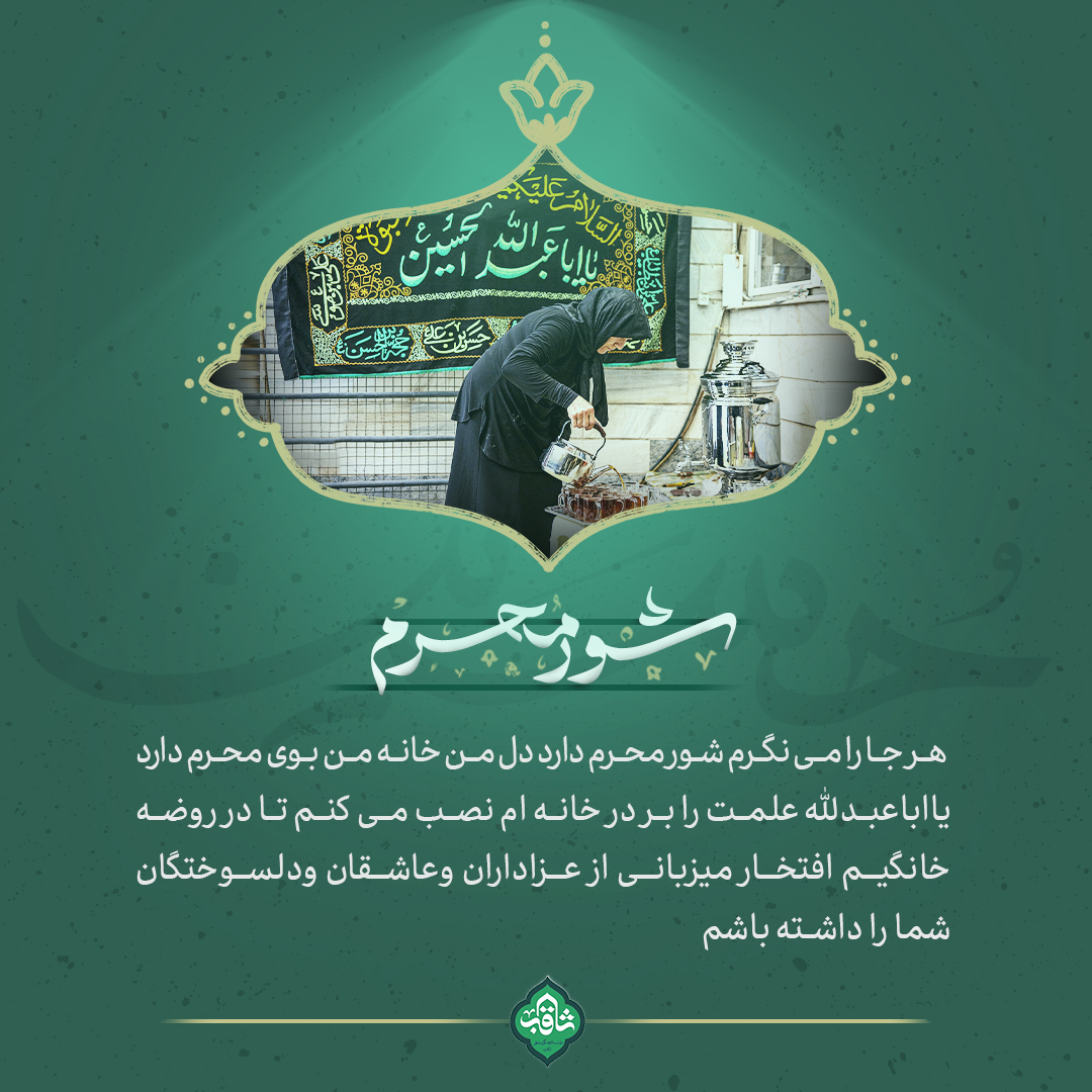 هر جا را می نگرم شور محرم دارد دل من خانه من بوی محرم دارد. یااباعبدلله علیه السلام علمت را بر در خانه ام نصب می کنم تا در روضه خانگیم افتخار میزبانی از عزاداران و عاشقان و دلسوختگان شما را داشته باشم
