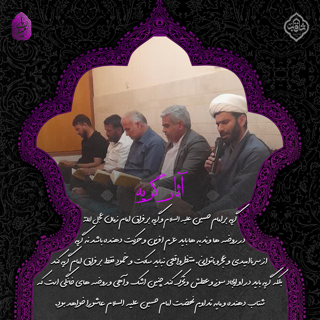 گریه بر امام حسین علیه السلام و گریه بر فراق امام زمان عجل الله در روضه ها و ندبه ها باید عزم آفرین و حرکت دهنده باشد نه گریه از سر ناامیدی و عجز و ناتوانی. منتظر واقعی نباید ساکت و خمود فقط بر فراق امام گریه کند بلکه گریه باید در او ایجاد سوز و عطش و تحرک کند. این اشک و گریه با برگزاری روضه های خانگی هم میسر میشود. که شتاب دهنده و مایه تداوم نهضت امام حسین علیه السلام عاشورا خواهد بود.