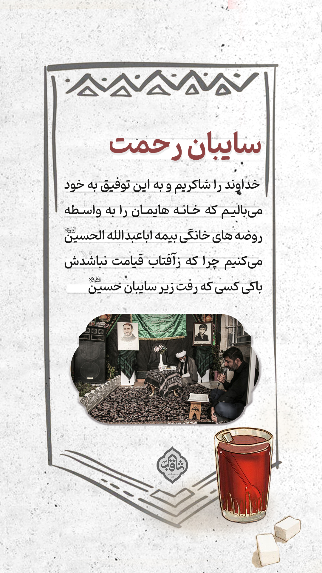 خداوند را شاکریم و به این توفیق به خود می‌بالیم که خانه هایمان را به واسطه روضه‌های خانگی بیمه اباعبدالله الحسین علیه السلام می کنیم چرا که ز آفتاب قیامت نباشدش باکی کسی که رفت زیر سایبان حسین علیه السلام