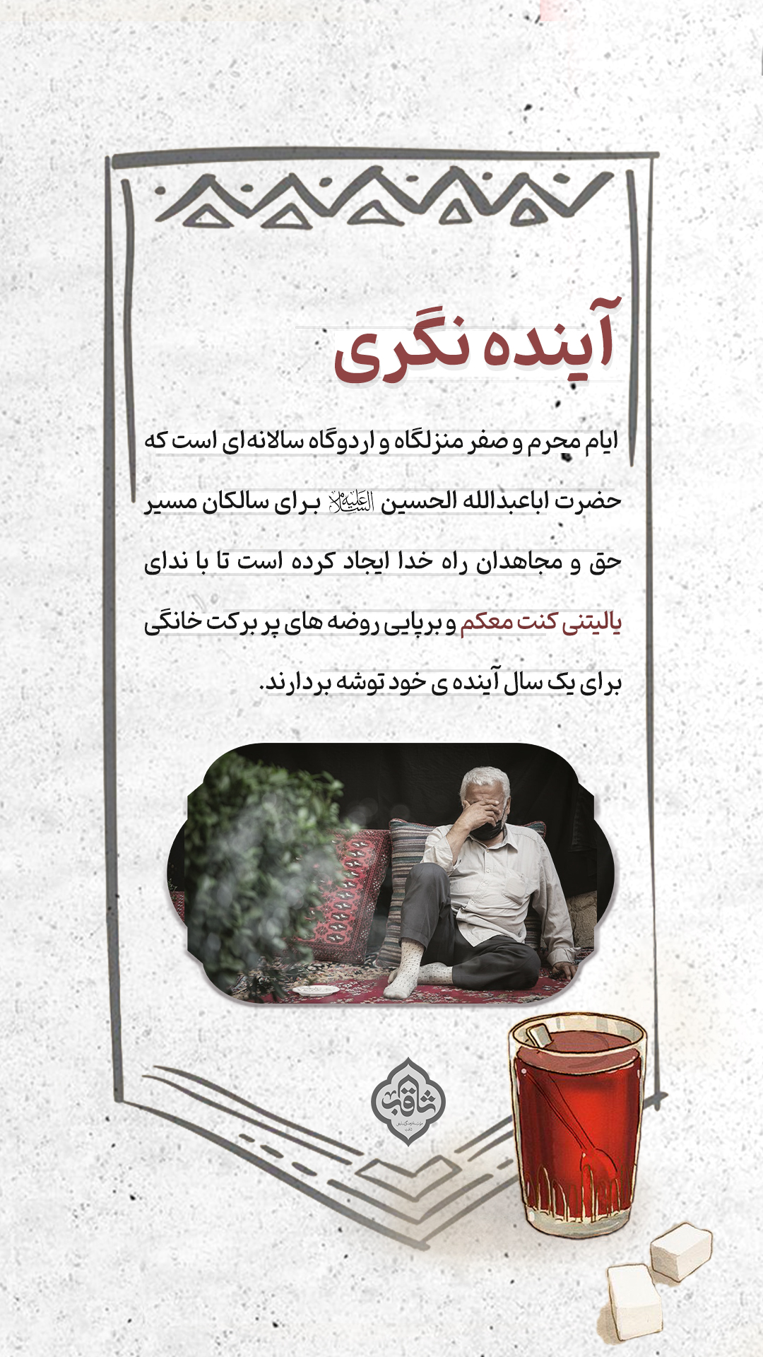 ایام محرم و صفر، منزلگاه و اردوگاه سالانه ای است که حضرت اباعبدالله الحسین علیه السلام برای سالکان مسیر حق و مجاهدان راه خدا ایجاد کرده است تا با ندای یالیتنی کنت معکم و برپایی روضه های پر برکت خانگی برای یک سال آینده ی خود توشه بردارند.