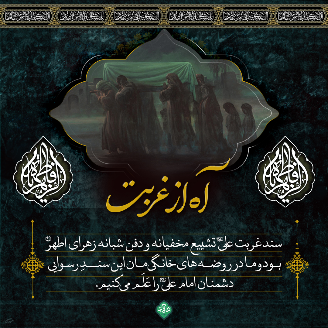 سند غربت علی تشییع مخفیانه و دفن شبانه ی زهرای اطهر بود و ما در روضه های خانگیمان این سند رسوایی دشمنان امام علی را عَلَم میکنیم